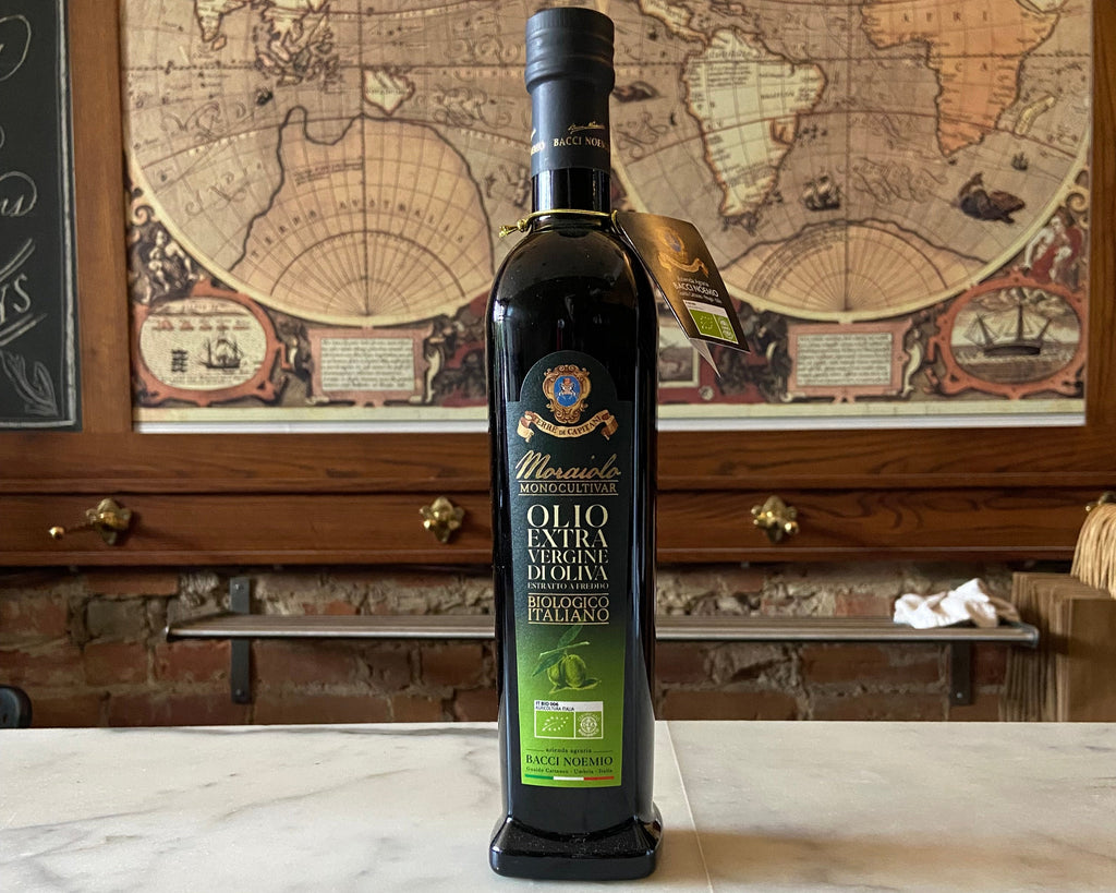 Monocultivar Moraiolo Bio Bacci Noemio is an organic extra virgin olive oil, obtained exclusively from 100% Moraiolo olives, harvested slightly in advance and at the right degree of ripeness to best preserve the organoleptic and nutritional characteristics. The artisanal processing of this monovarietal limits production to a few thousand liters, guaranteeing a rare and precious product.